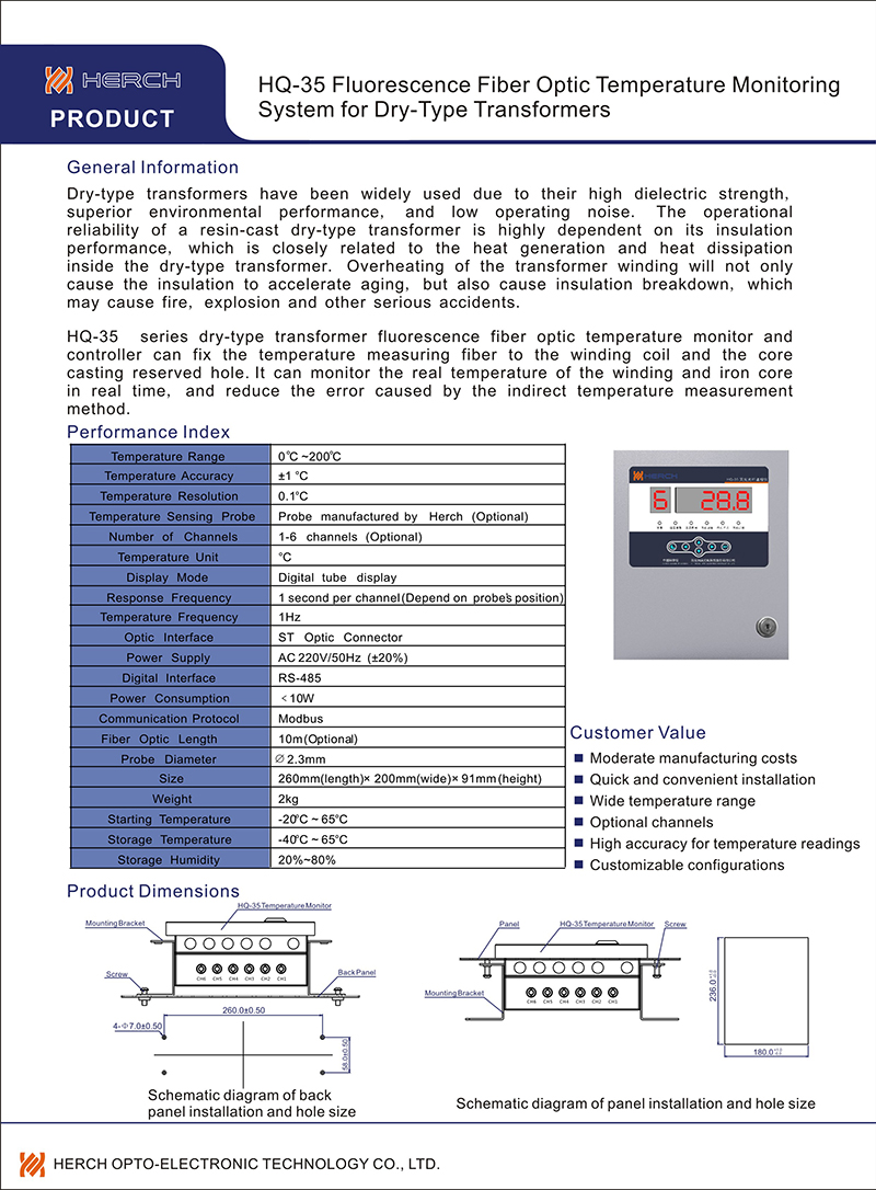 HQ-35 Fluorescence Fiber Optic Temperature Monitoring System for Dry-Type Transformers